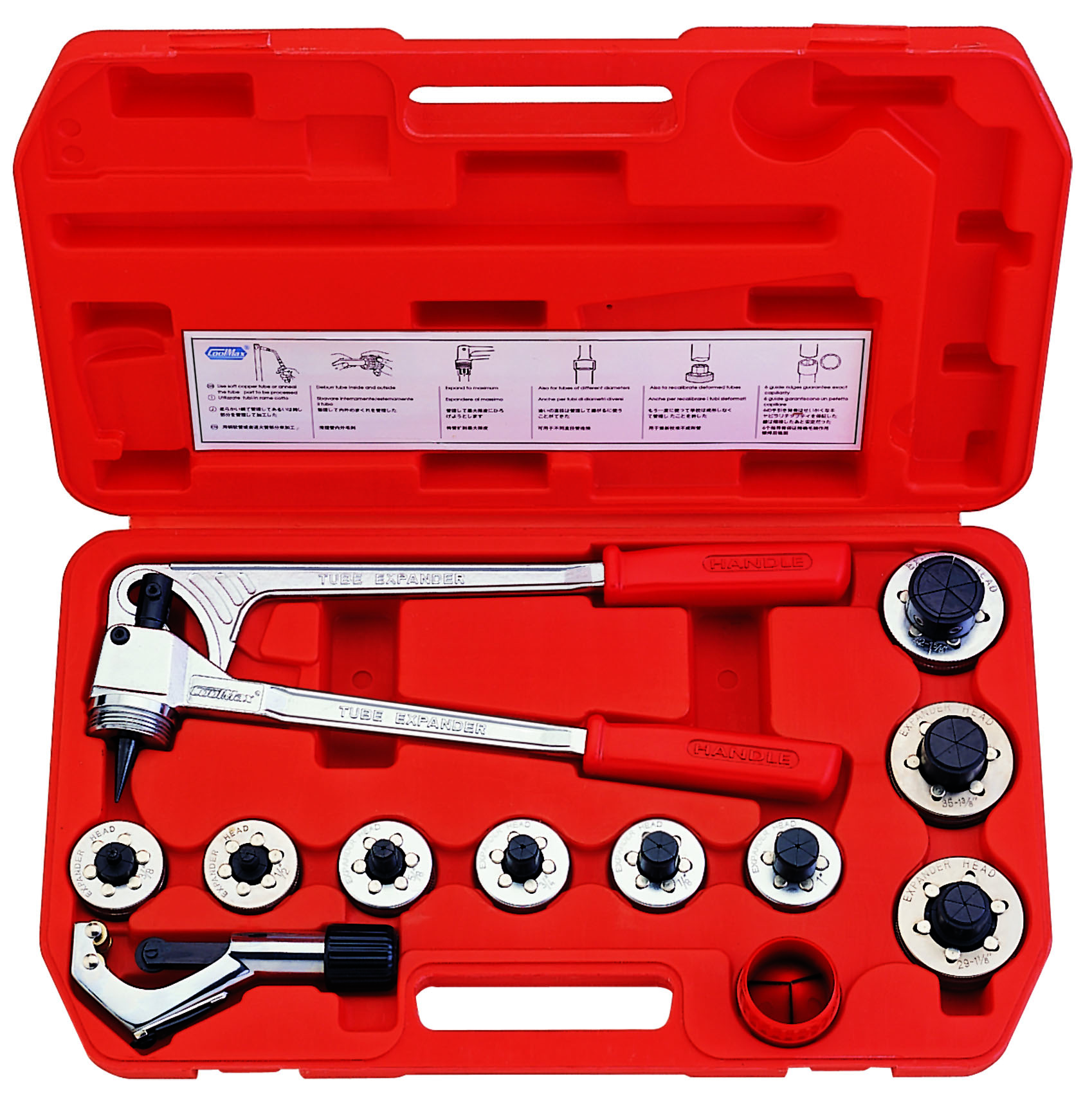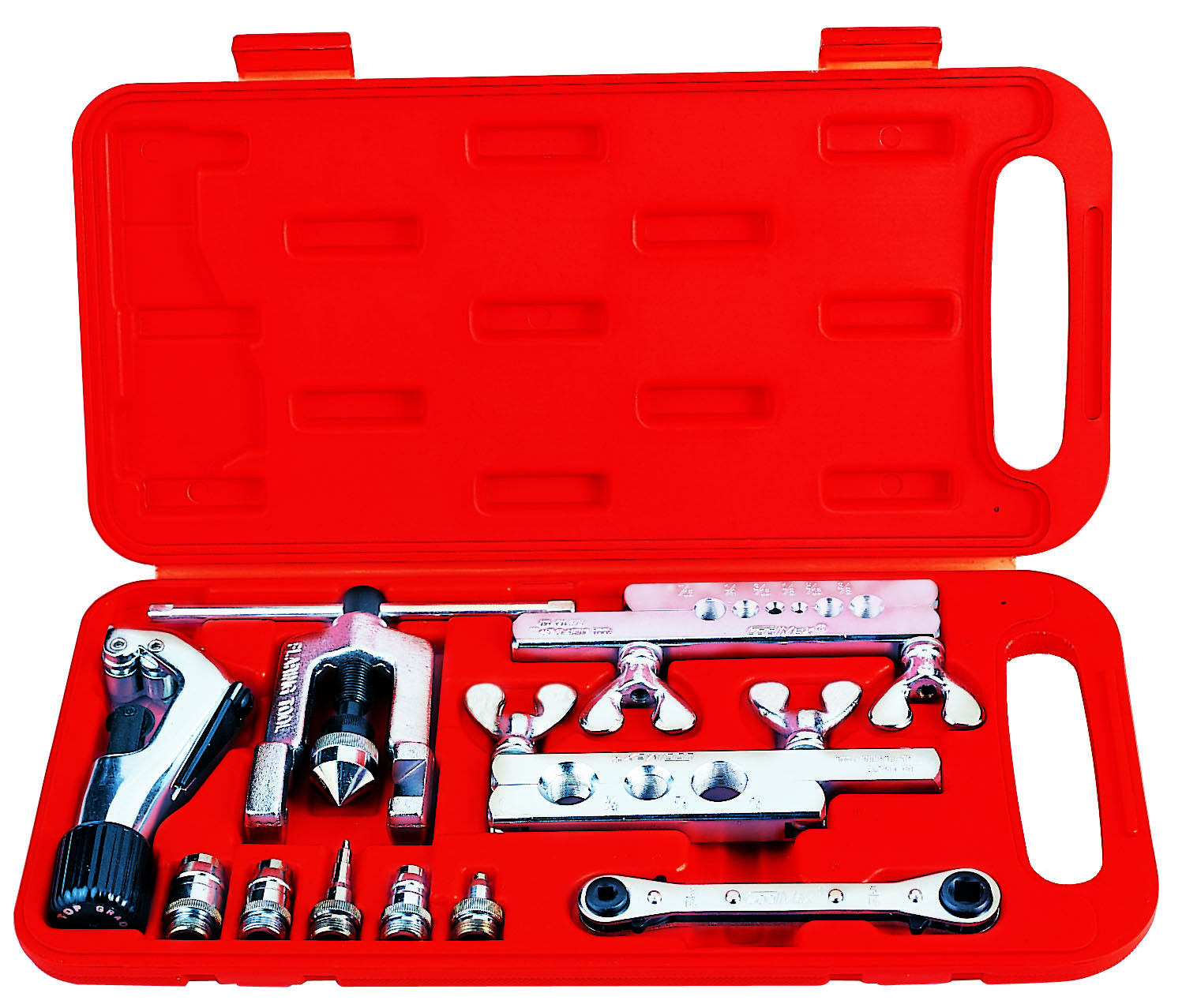 tools: Cutters, Flaring Tools, Expanders, Benders. Refrigerant Gauges, Charging Hoses, Manifolds, and parts such as: Latches, Hinges, Brass Fittings, Oil Separators, Driers, etc.. Some items are acquired patents.