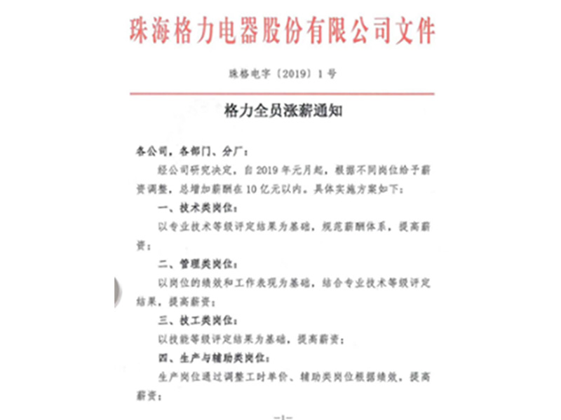 逆势全员涨薪凸显“不一样的格力”