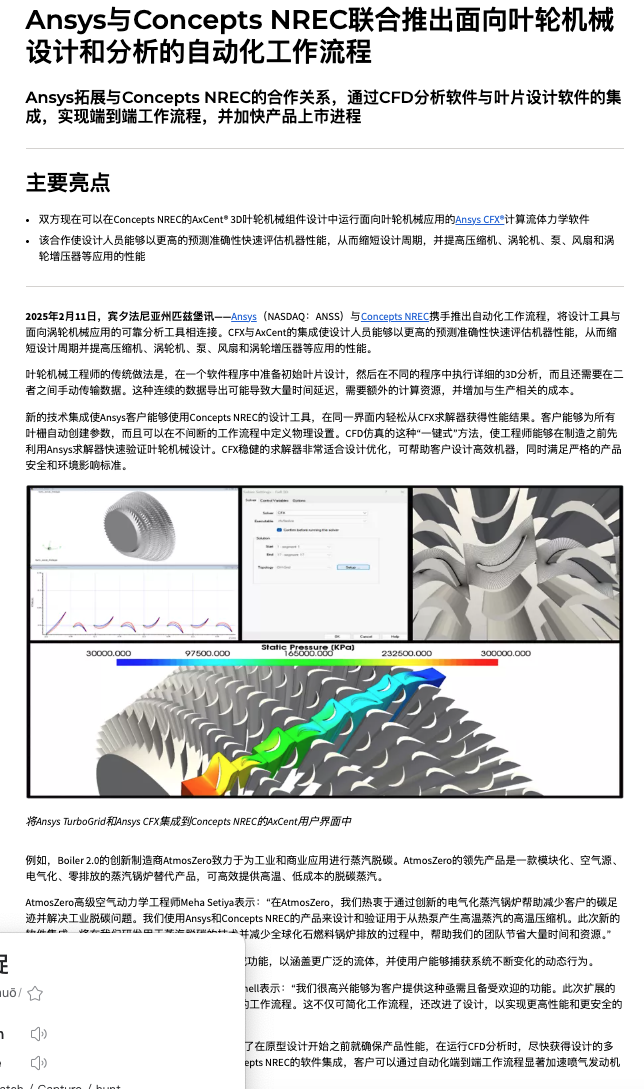 Ansys与Concepts NREC联合推出面向叶轮机械设计和分析的自动化工作流程