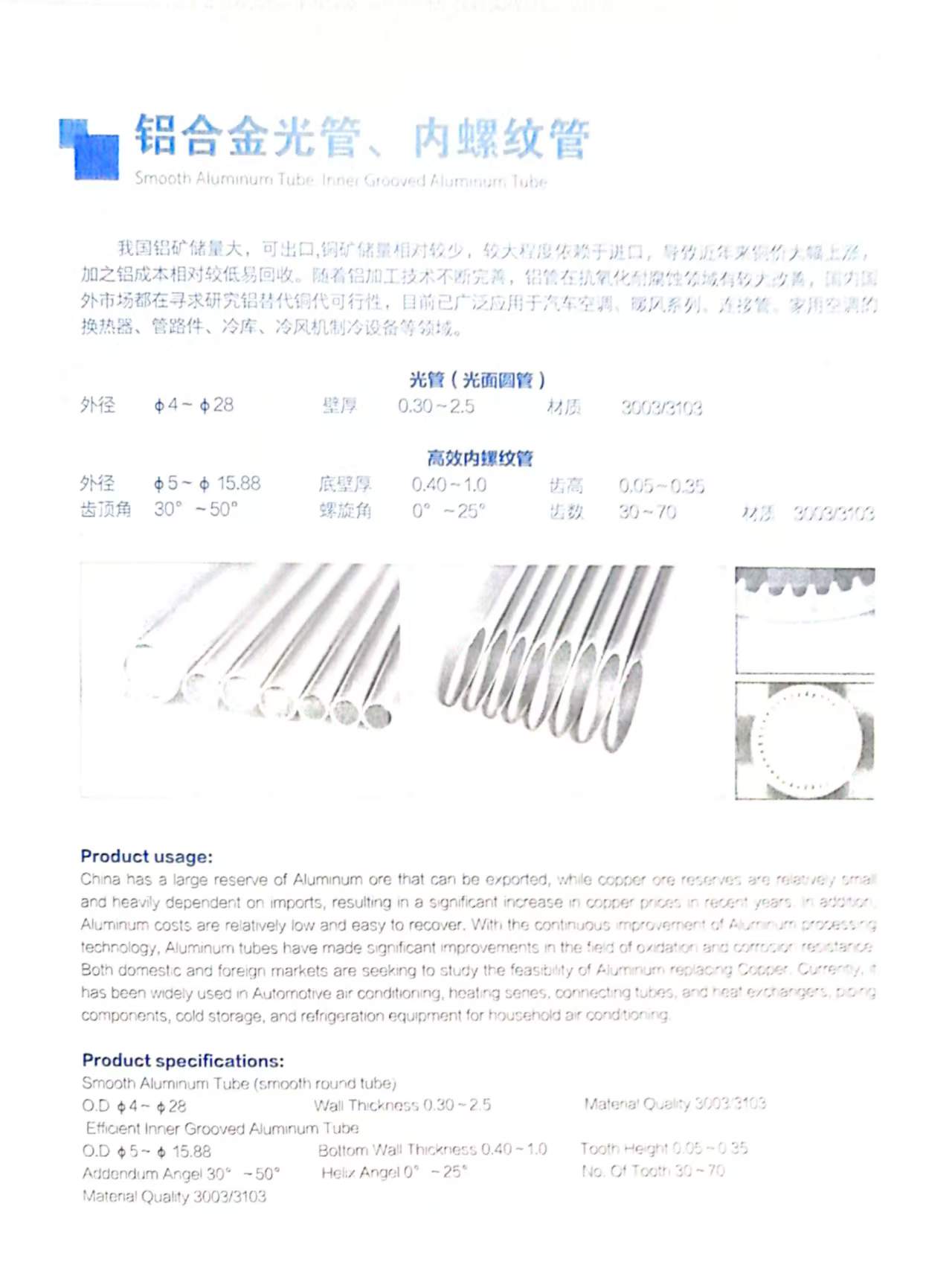 铝合金光管、内螺纹管