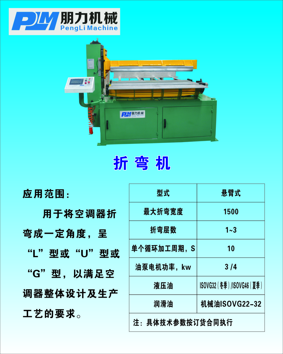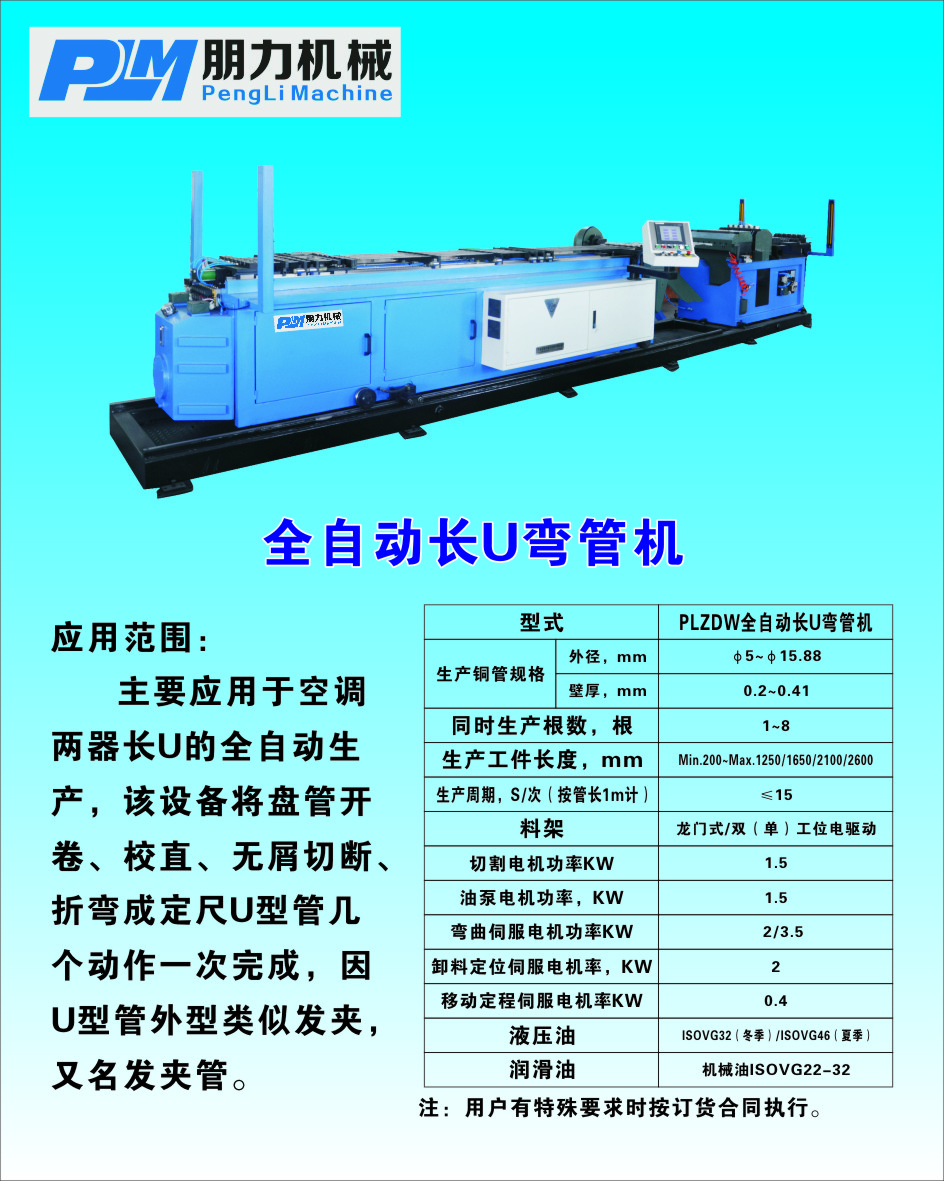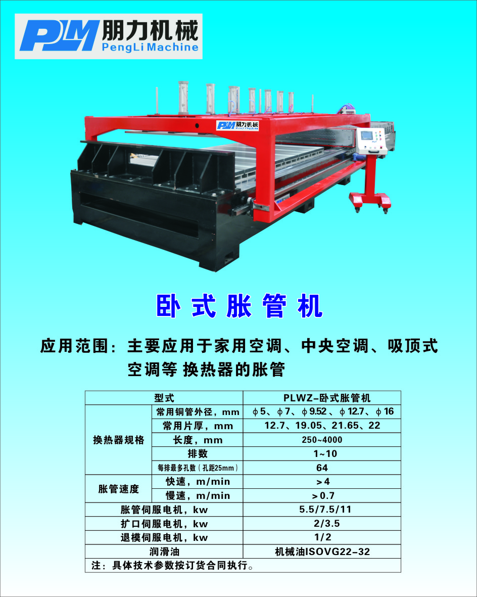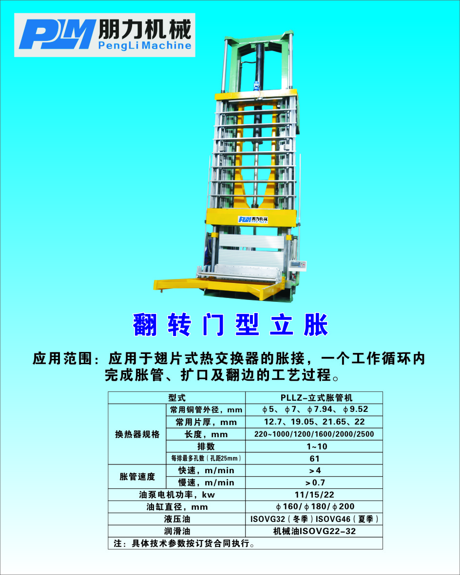 宁波朋力机械有限公司是专业研发和制造空调中关键部件冷凝器,蒸发器(简称两器)的厂家。主要设备有立(卧)式胀管机,手提式胀管机,全自动长U弯管机,半自动长U弯管机,全自动小U弯头机,弯头清洗机,套环机,换热器折弯机,盘管校直切割机,等两器的生产设备。并承接新老客户设备的改造,维修以及各种机型配件的供应。我们拥有精良的设计和制作人员,充分的吸收客户反馈的意见,使产品更加精益求精。并且我们拥有一支精湛的售后服务团队能为你及时提供优质服务。我们将秉承:质量保证,服务到位,诚信立足,创新致远,的经营理念真诚期待与你合作,共创双赢!