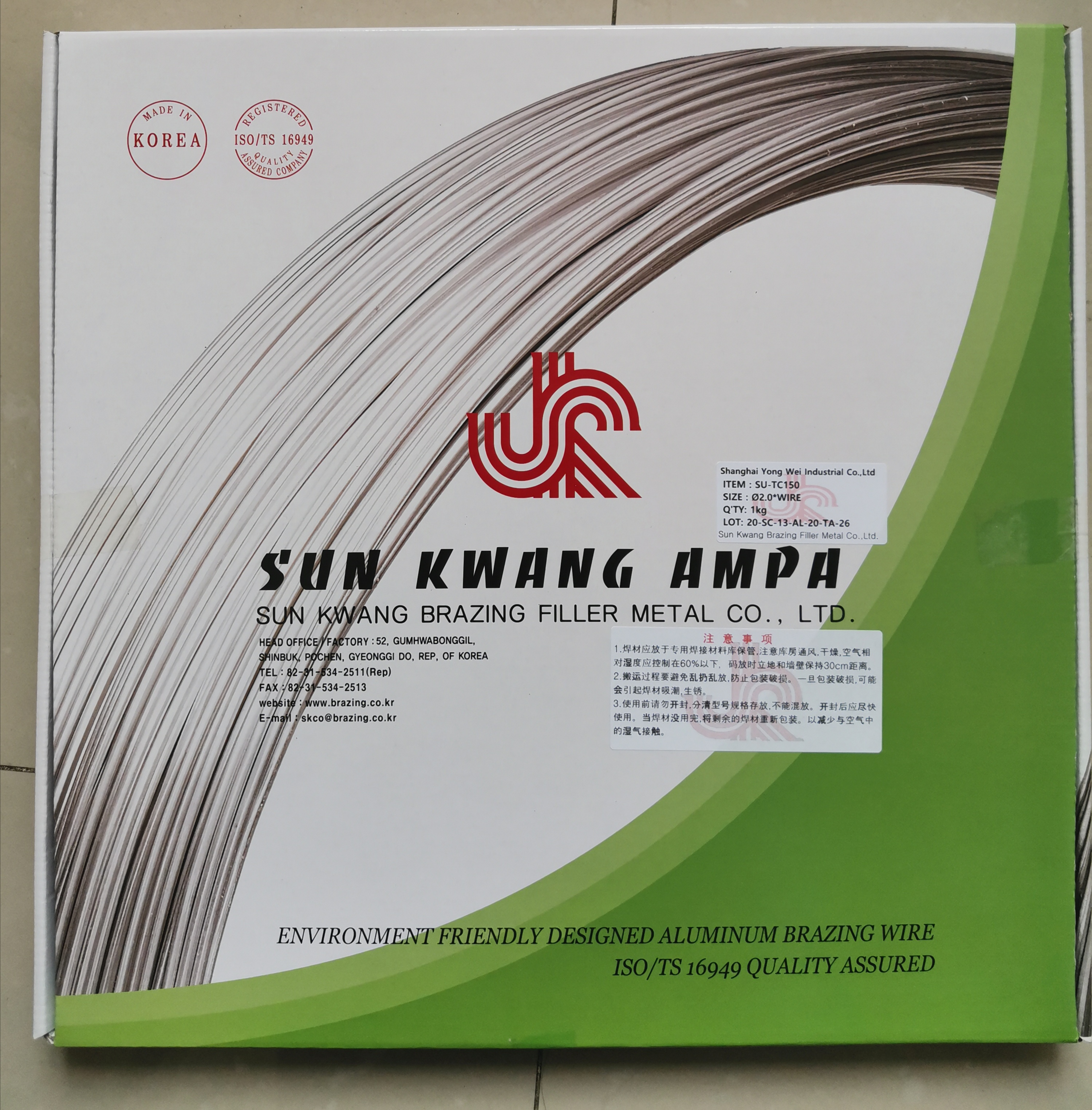 上海雍伟实业有限公司是韩国“鲜光”焊丝中国总代理,及生产各种焊接材料及相关设备的专业厂家,公司的主要产品有:铝焊丝,铜铝焊丝,铝铝焊条,铝焊环等。产品广泛应用于制冷、变压器、汽车空调,电力等行业。通过了ISO9001,ROHS等认证,满足不同行业客户的需求。